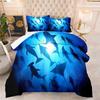 Tiefseehai Bettbezug Set Schwarzer Hai Bettwäschesets Unterwasserwelt Ozeanleben Bettdeckenbezug Set für Jungen Männer Queen Size