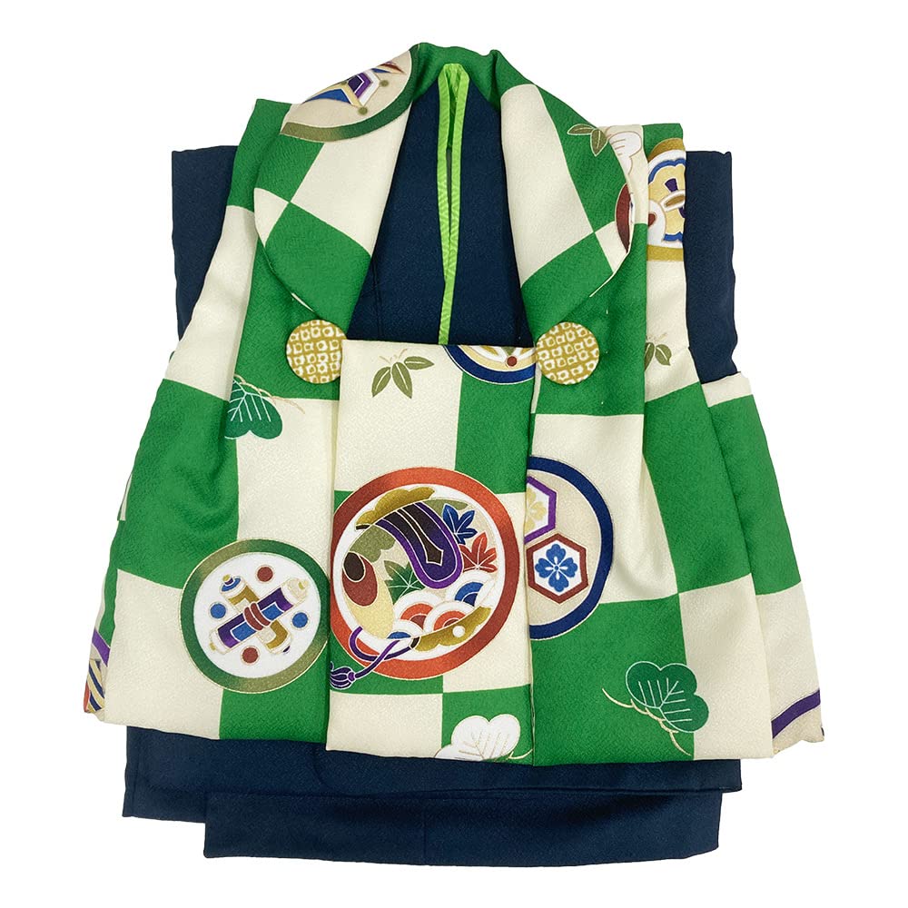 Kyoto Kimono Yuzen Kimono Set for First Meal Ceremony, First Festival, Children's Day, Boys, Kimono, Baby Ensemble (Navy x Green (Hammer))