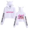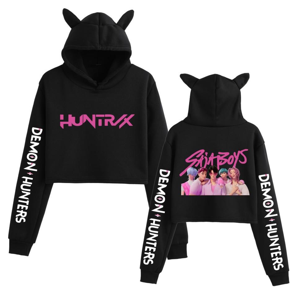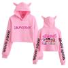 Anime K-Pop Dämonenjäger Saja Boys Crop Tops Katzenohren Sweatshirt Langarm Mädchen Mode Kapuzenpullover