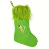 1pc Green Christmas Stocking with Velvet Cuff and Embroidered Initial Holiday Mantel Decoration, Christmas and New Year Gift Bag