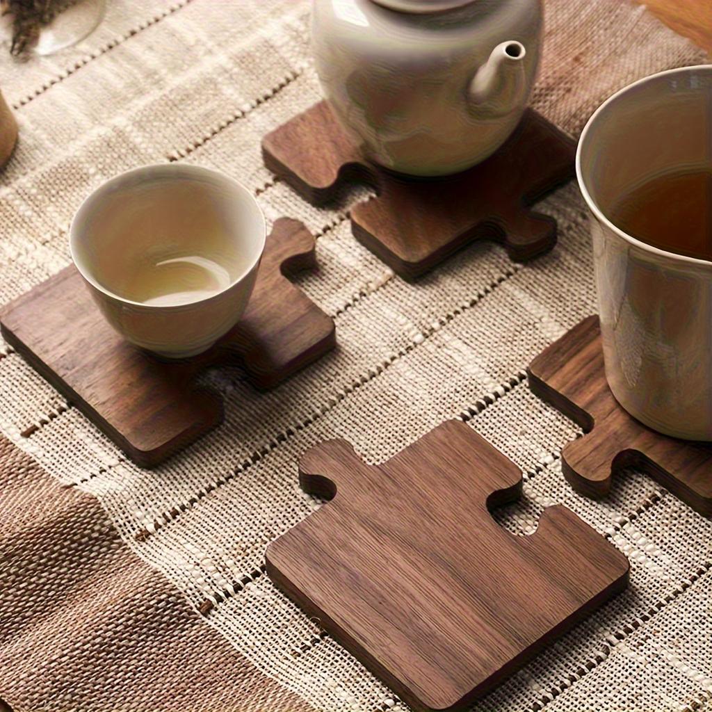 1/4 Stück Vintage Holzpuzzle-Untersetzer mit isoliertem Boden, geeignet für Büroschreibtische, Bars und Zuhause Halloween, Weihnachten Dekoration