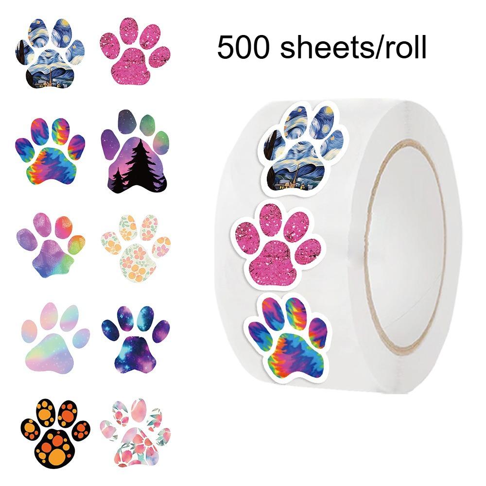 Vibrant Animal Paw Print Stickers - Colorful Reward Stickers, Self-Adhesive Paper Stickers for Classroom & Home Office Decor