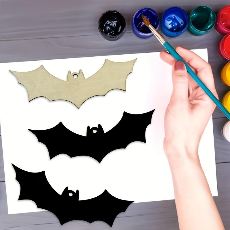 DIY Recycelte Holz Fledermausförmige Dekorationen - Leichte Unbemalte Bastelsets mit Juteaufhängern für Halloween-Partydeko