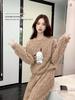 Einfarbiges Damen-Jacquard-Shu-Baumwollfleece-Pyjama-Set - Warm, dick, langärmelig, Homewear für Herbst und Winter.