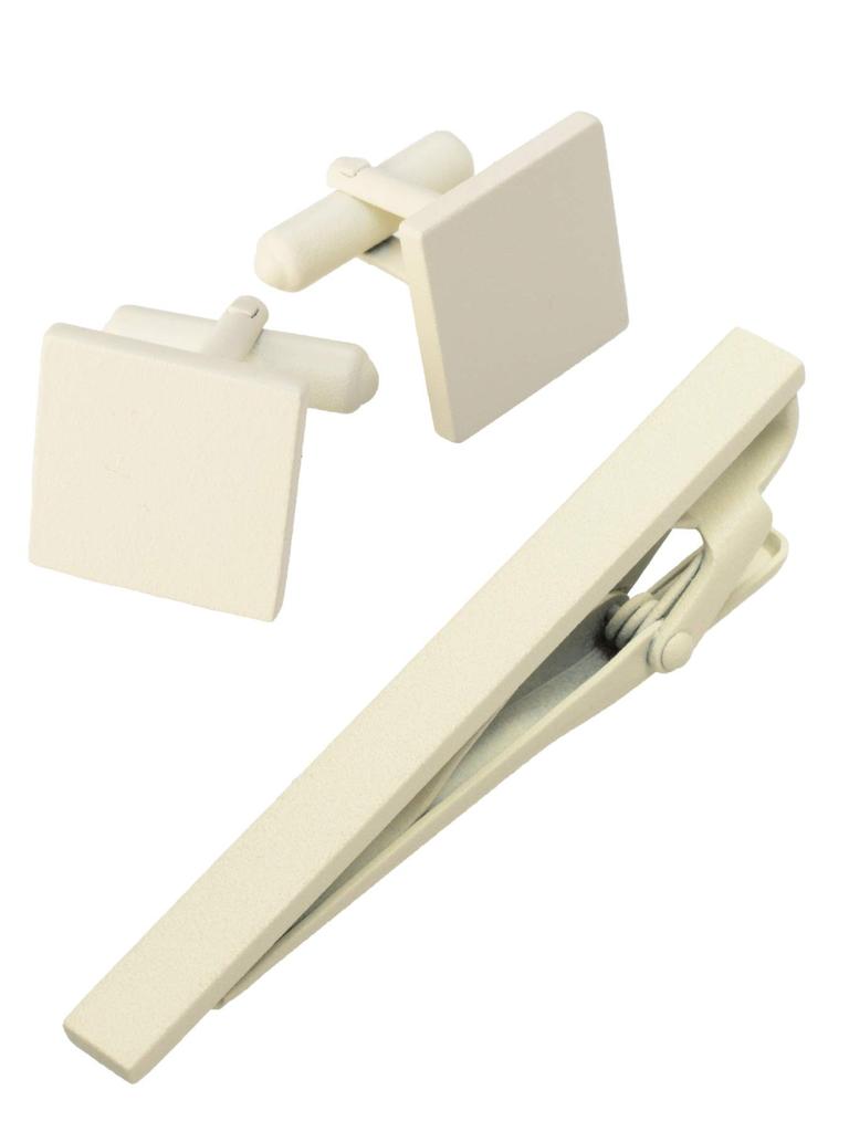 Tabarat Krawattennadel und Manschettenknöpfe Farbige Nadel und Farbige Made in Japan Set, Manschettenknöpfe, Flach, Herren, (Elfenbein)