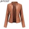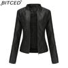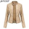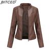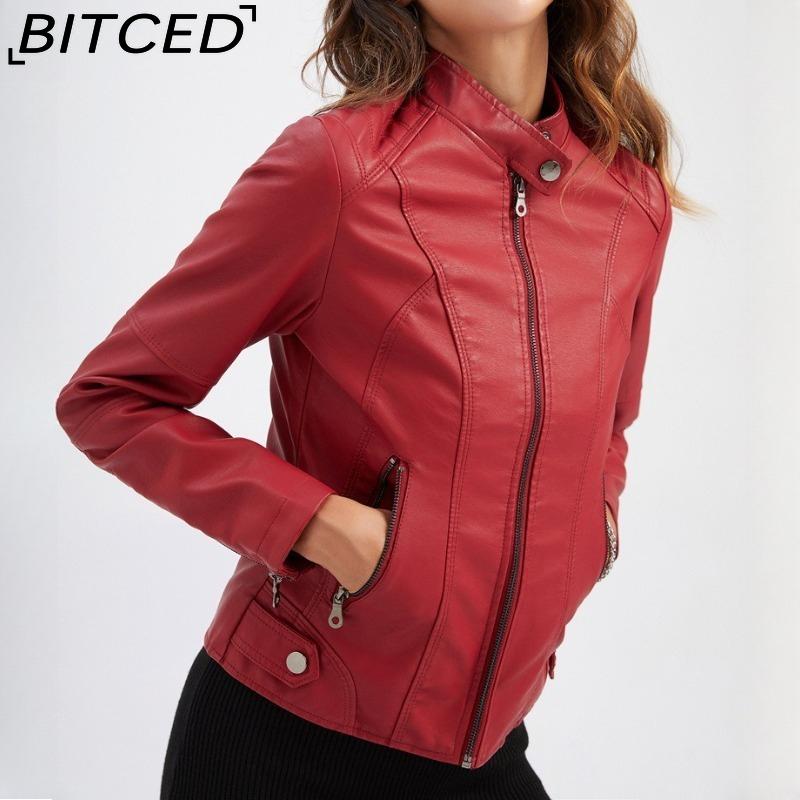 BITCED Women's Slim-Fit Leather Jacket - Lightweight Spring/Autumn Outerwear Motorcycle-Style Oversized Stand Collar Leather Jacket