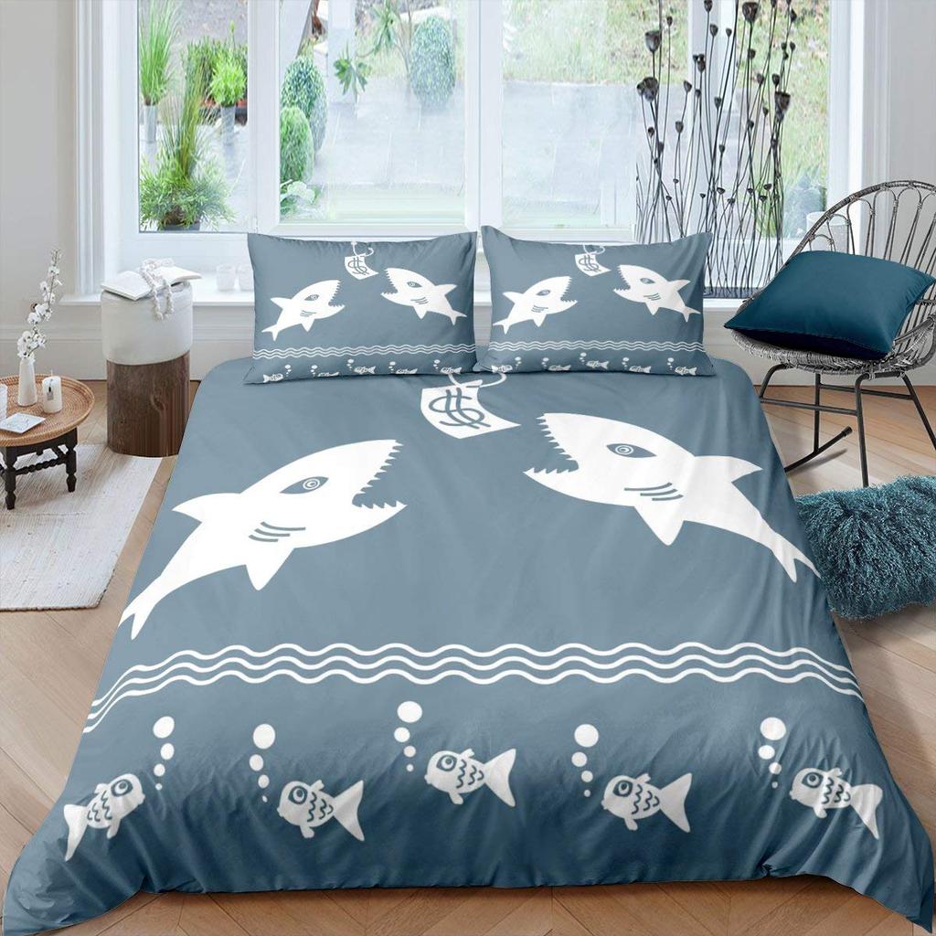 Cartoon Hai Königin Bettbezug Blaues Ozean Tier Thema Bettwäsche Set Für Kinder Jungen Mädchen Meeresleben 2/3tlg. Weicher Bettdeckenbezug
