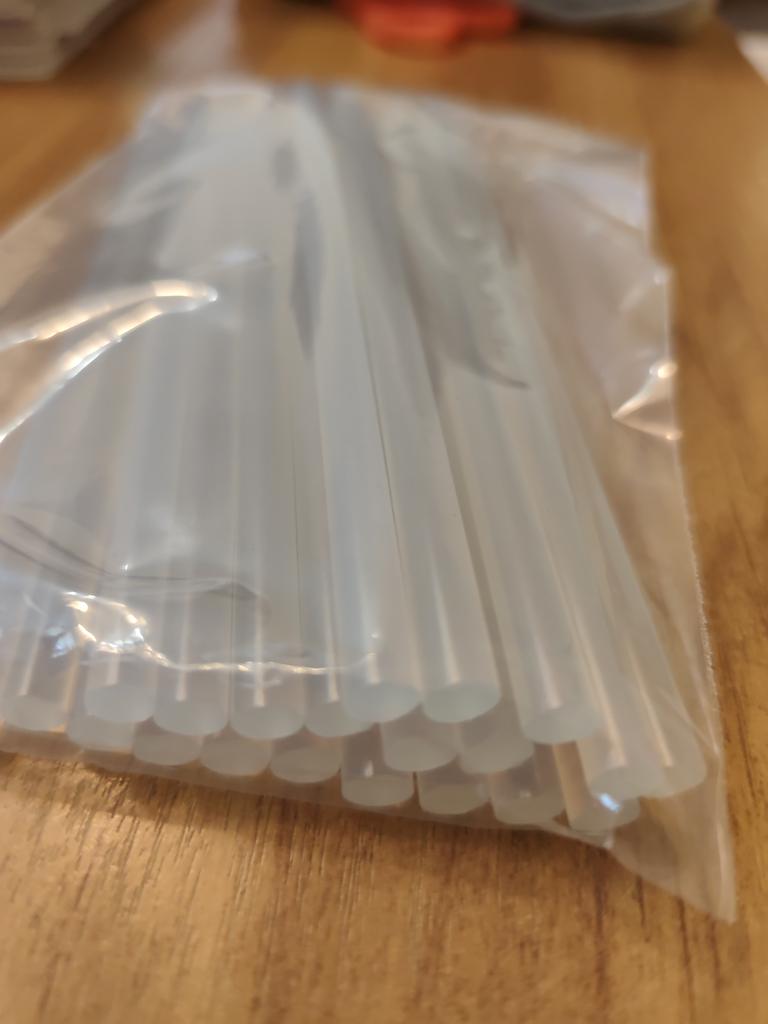 Pack Schmelzklebestifte. Die Packung enthält 50 Riegel, die sowohl für große als auch für kleine Spender verwendet werden können (ich benutze sie für einen kleinen und es funktioniert perfekt).. Sie sind transparent. Ich habe die große bestellt, aber wenn du nicht so viele brauchst, gibt es Packungen mit 5, 10 und 20 Riegeln.. Jeder Riegel ist ungefähr 16 Zentimeter lang Sie funktionieren super gut, ich empfehle sie.