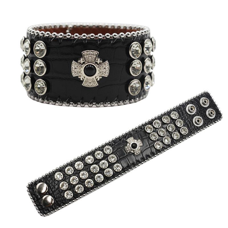 Europäischer und Amerikanischer Beliebter Strass Armschmuck, Modisches Design Diamantenbesetzter PU Leder Handschmuck