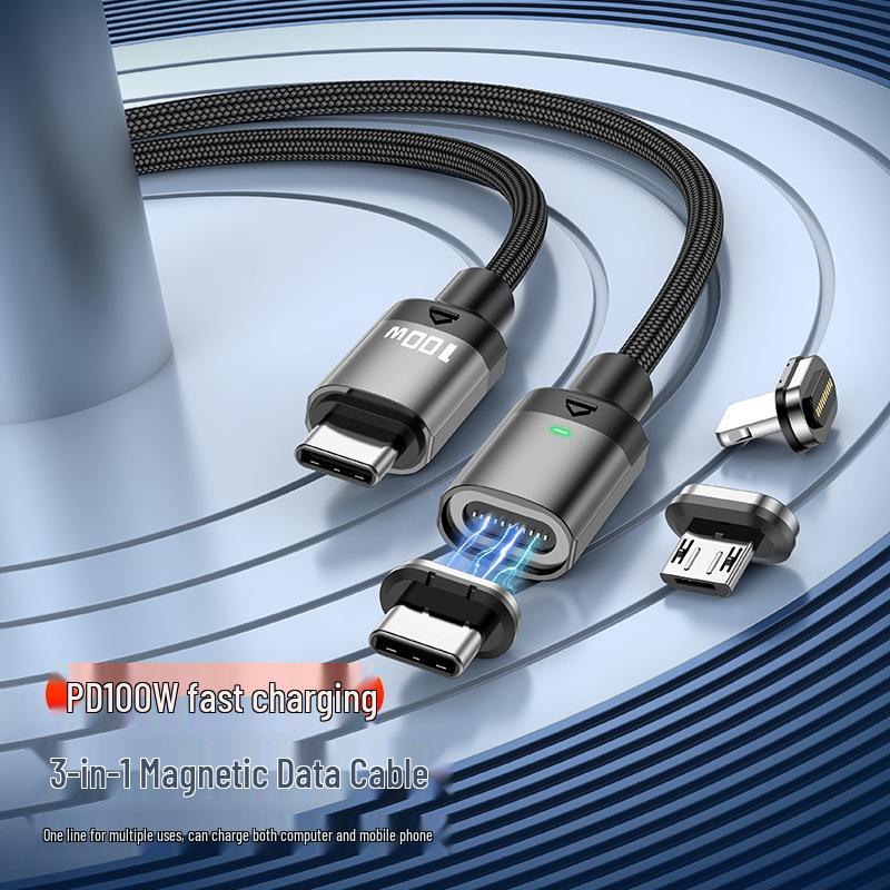 Grenzüberschreitendes magnetisches 3-in-1 PD-Schnellladekabel für Apple, Android & Typ-C-Geräte