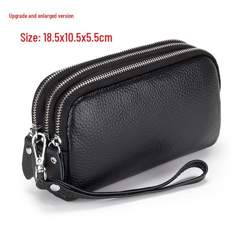 Extra Große Damen-Clutch aus Rindsleder: Dreilagige Reißverschluss-Handgelenktasche & Handy-Geldbörse aus echtem Leder.