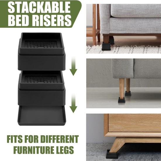 Vielseitige Kompatibilität mit verschiedenen Möbeltypen, einschließlich runden, quadratischen, rechteckigen oder unregelmäßigen Beinen. Diese kompakten und dennoch robusten Stuhlerhöhungen eignen sich für Betten, Stühle, Tische, Schränke, Sofas, Fernsehständer, Waschmaschinen, Kühlschränke und mehr. Erleben Sie zuverlässige Unterstützung bei allen Ihren Möbelwünschen.