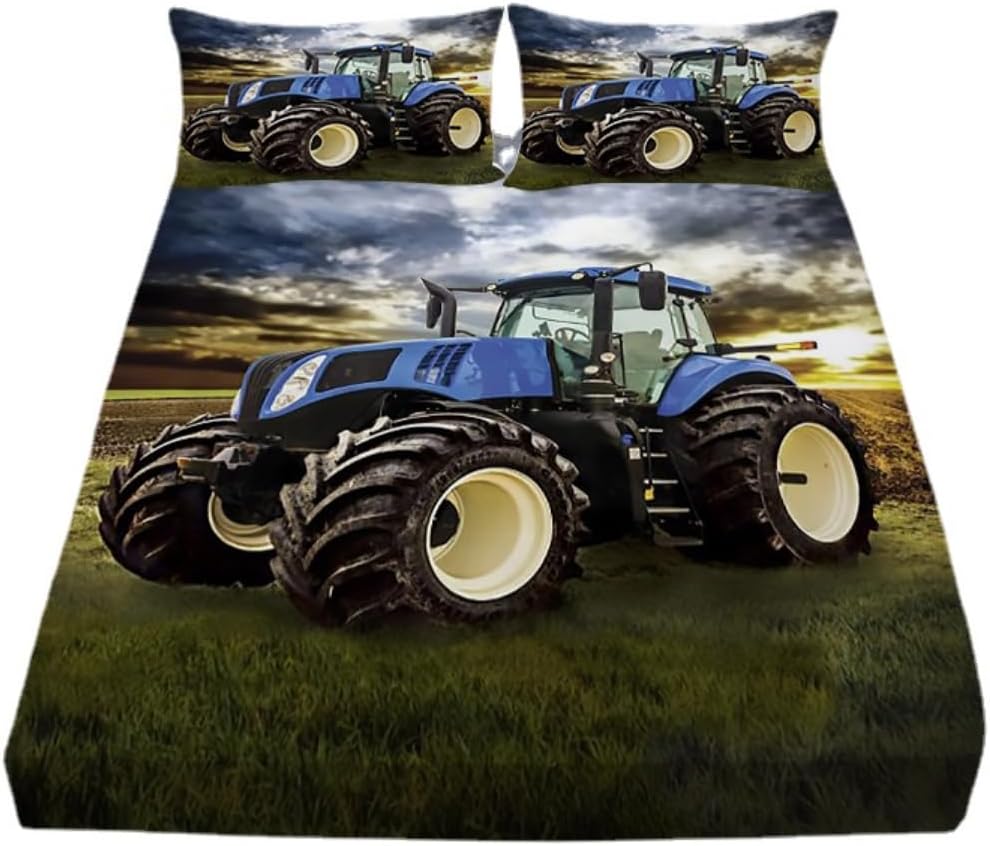 3D Traktor Spannbettlaken Kinder Landwirtschaftliche Geräte LKW Bettwäscheset für Jungen, Traktoren Fahrzeuge Bettlaken Set Atmungsaktive Bettdecke