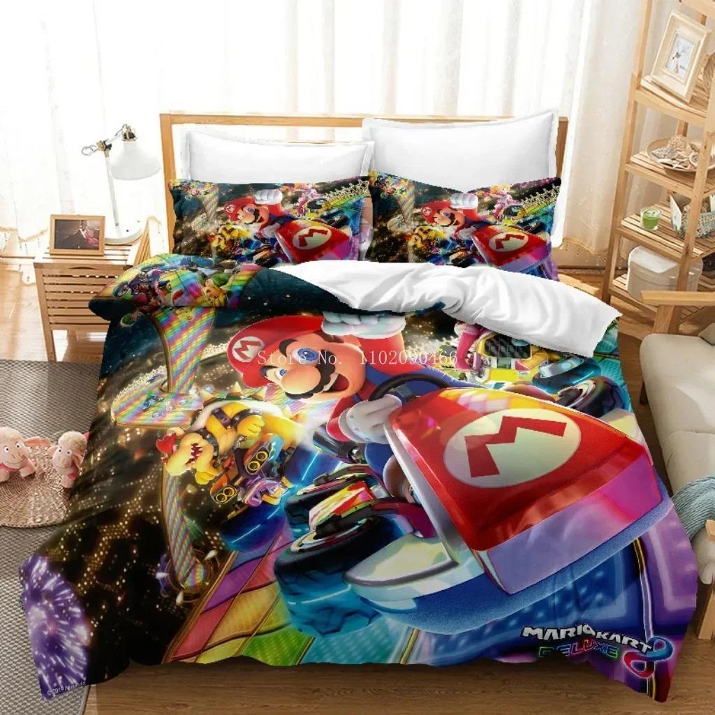 3D HD SuperS M-Mario Bettwäsche-Set Spielfiguren Super Bros Bettbezug, Kinder-Steppdeckenbezüge Kissenbezug 2/3-teilig Einzelbett Doppelbett