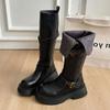 Schwarze Retro-Stiefel im britischen Stil mit dickem Absatz und Plateau für Damen, neu für Herbst 2025, aber kniehohe Ritterstiefel