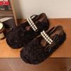 Schwarze einpedalige flauschige Schuhe Damen Winter Samt Oberbekleidung Internet-Berühmtheit Explosion Doudou Schuhe 2025 neue Mode Baumwollschuhe