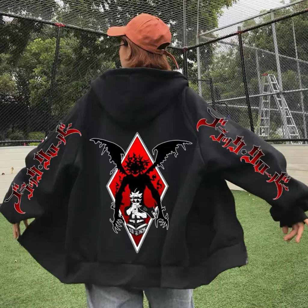 Harajuku Style Black Clover Asta Anime Grafik Reißverschluss Hoodies Vintage Übergroß Langarm Herren Damen Kleidung