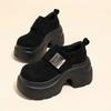 Kleine höhenverstärkende Plateauschuhe Retro vielseitige Slipper Damen 2025 Herbst neu europäischer und amerikanischer Stil Klettverschluss Einzelne Schuhe