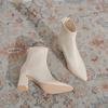 Weiches Leder spitze dicker Absatz kurze Stiefel Damen 2025 Herbst und Winter neu dünn beliebt Mode vielseitig Reißverschluss Martin Stiefel