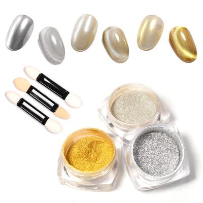 Spiegel-Nagelpuder, Funkelnd, Ultrafein, Nagelglitzer, Glitzerpuder, Metallpuder, Farbverlauf-Nagelpuder, Gold, Silber, Gelnägel, Nagelkunst, DIY,