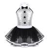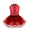 Mädchen Ärmellos Glänzend Pailletten Zierknöpfe Ballett Tanz Gymnastik Turnanzug Mesh Tutu Kleid Moderner Tanz