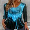 Langärmeliges lässiges V-Ausschnitt-Oberteil - T-Shirt mit Blumendruck für Frühling & Herbst - Damenbekleidung