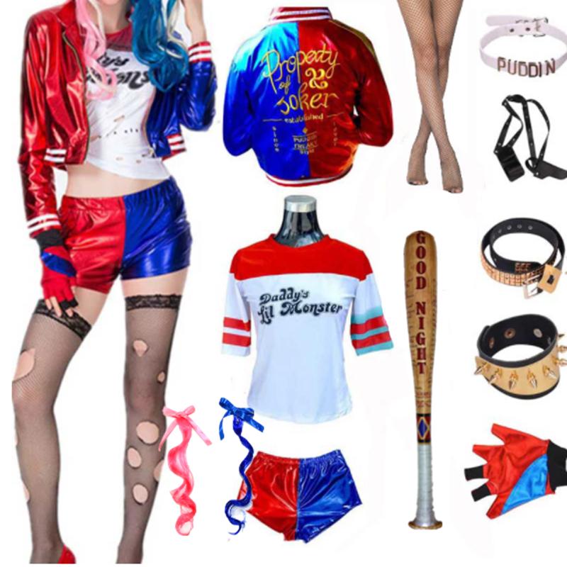 Top Qualität Mädchen Damen Selbstmord Harley Cosplay Kostüme Squad Quinn Monster Genähte Jacke Hosen Sets Karneval Anime Kostüm