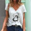 Damen Casual Fashion Sommer V-Ausschnitt T-Shirt Bedruckte Kurzarm-Tops