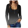 Women's Fashion Long Sleeve Gradient Button Low Chest Sexy Pullover T-Shirt Top