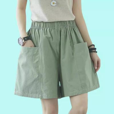 Damen-Sommer-Shorts mit elastischer Taille, lockere hohe Taille, breites Bein, dünne Freizeit-Shorts