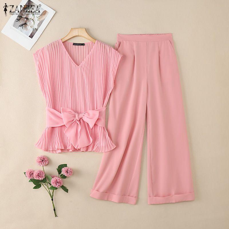 ZANZEA Damen Ärmellose Tanktops und Hosen Sommer Zweiteiler Anzugsets