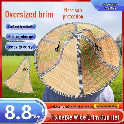 MUQZI Sportzubehör Herren Damen Bambus Weben Sommer Outdoor Sonnenschutz Breite Krempe Strohhut Kappe