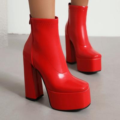 Sexy Plateau Damen Stiefeletten 2025 Winterschuhe Hohe Absätze Kurzer Stiefel Schwarz Weiß Rot Tanzpartyschuhe Für Mädchen Große Größe
