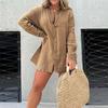 Damenmode Einfarbig Doppellagiger Krepp Langarmhemd mit Knöpfen + Shorts Set