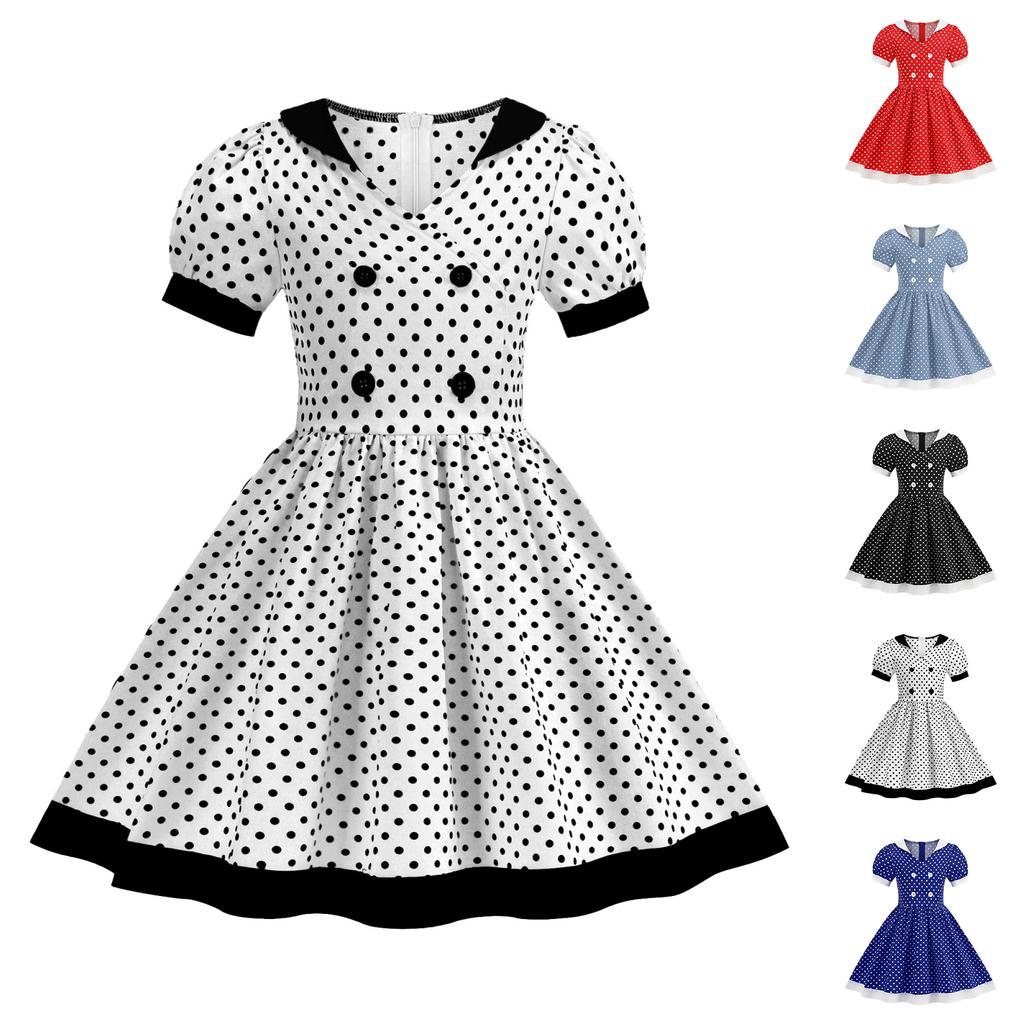 Fashion Summer Waist Polka Dot Dress Sweet Square Neck Girls Women's Clothing