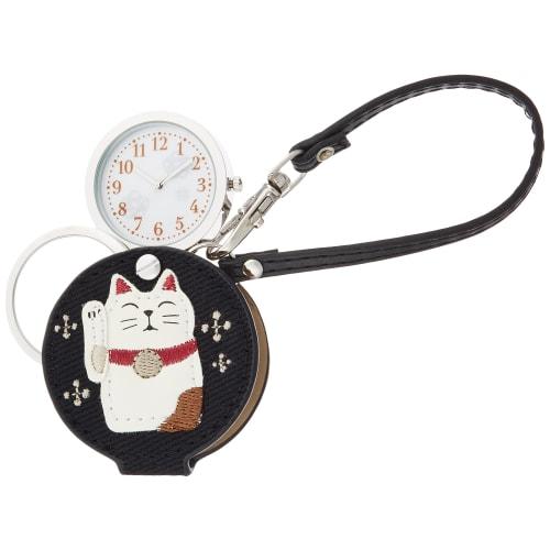 Fieldwork Taschenuhr, Maneki Neko Design mit Lupe, LW047-4, Damen, Schwarz