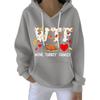 Damen Locker Bequem Kordelzug V-Ausschnitt Langarm Thanksgiving Print Hoodie