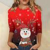 3/4-Ärmel Shirts für Damen Druck Weihnachts-T-Shirts Blusen Lässig Plus Basic Oberteile Pullover