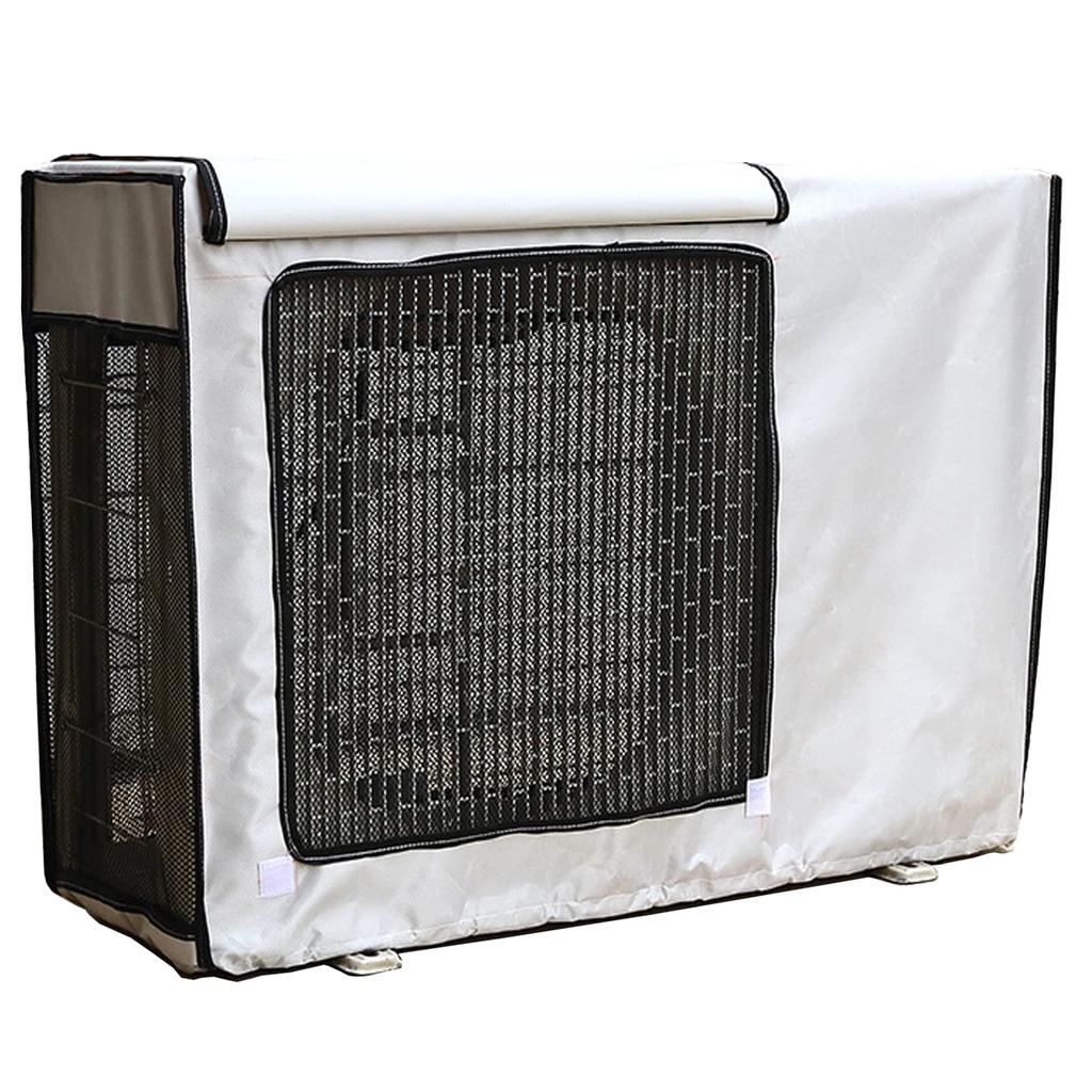 [Schutz vor schlechtem Wetter] Diese Abdeckung für das Außengerät ist aus wasserabweisendem Stoff gefertigt, der Regenwasser abweist und die Ansammlung von Schlamm und Staub verhindert.. Seine ausgezeichnete Wetterbeständigkeit macht es zu einem großartigen Produkt für alle Jahreszeiten.. Es verhindert, dass Schlammwasser und Laub während der Regenperioden wie Sommer, Taifunen und der Regenzeit in die Außeneinheit gelangen.. Seine Haltbarkeit bedeutet, dass es bei Taifunen nicht wegfliegt, wenn man es festbindet, und es hält starkem Schneefall in kalten Regionen stand, ohne zu brechen.. Es sehr praktisch, weil man die Abdeckung in Jahreszeiten, in denen man die Klimaanlage nicht benötigt, nicht abnehmen muss.. (Hinweis: Bitte blockieren Sie nicht die Belüftungsöffnungen an der Seite des Außengeräts.)