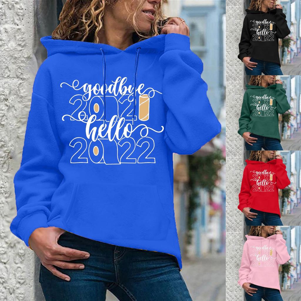 Damenmode Lässiger Neujahrsdruck Kapuzenpullover Lockerer Sportpullover