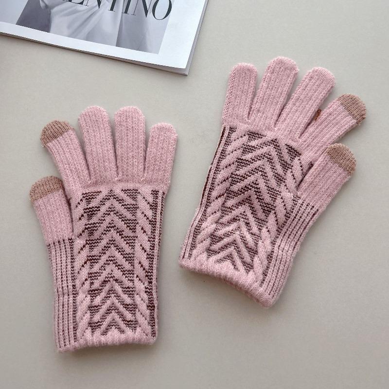 Neue Handschuhe Damen Winter Gestrickt Samt Jacquard Paar Warm Mode Winterhandschuhe