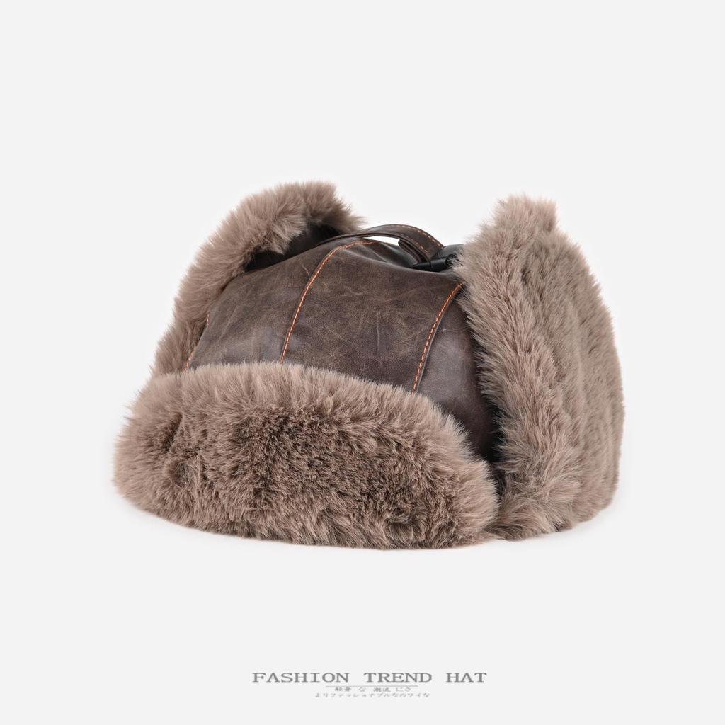 Retro Leder Lokomotivmütze Männer und Frauen Winter Samt verdickt Pilotenmütze warm Radfahren Ohrenmütze Tide