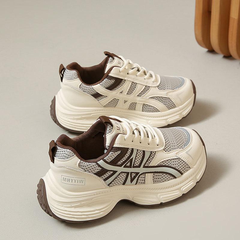 Leder Dad-Schuhe Damen 2025 Herbst neue dicksohlige erhöhende Schuhe Damen vielseitige und leichte lässige Sport-Damenschuhe