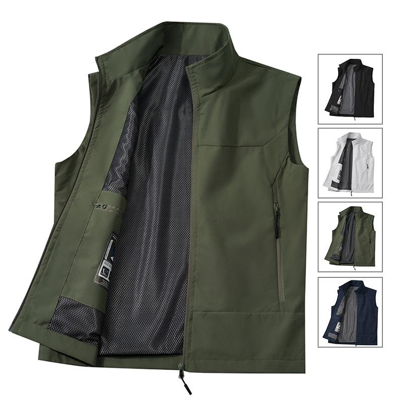 Outdoor Frühling und Herbst Angelweste Herren Locker Bergsteigen Fotografie Weste Jacke Strickjacke Stehkragen Weste Herrenweste