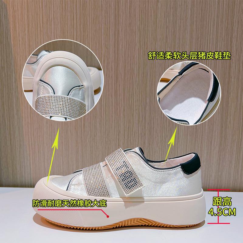 Strass Damenschuhe 2025 Frühling neue dicksohlige Klettverschluss kleine weiße Schuhe Damen lässige einzelne Schuhe Damen vielseitige flache Schuhe Damen