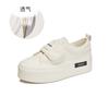 Leder Brotschuhe 2025 Frühling neue dicksohlige weiße Schuhe Klettverschluss Nische Freizeitschuhe flachsohlige vielseitige Damenschuhe