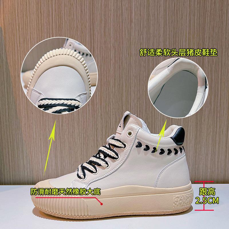 Lederne High-Top kleine weiße Schuhe Damen 2025 Frühling neue Damen flachbodige Sport-Board-Schuhe lässig vielseitig Weizenähren Damenschuhe
