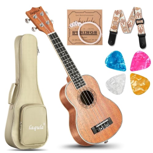 21-inch Mahogany Soprano Ukulele Beginner Set with Strap, Case, Picks, and Akira Strings