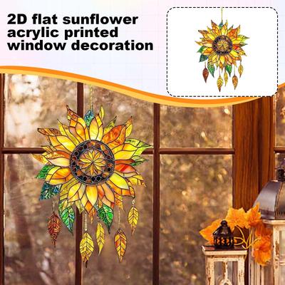2D Flache Sonnenblume Acryldruck Fensterdekoration Garten Heim Fensterdekoration Flacher Anhänger