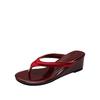 Retro rote Keilabsatz Zehenerhöhung Dicksohlige Flip-Flops Damen Frühling und Sommer Oberbekleidung Coole Hausschuhe Damenschuhe Sandalen